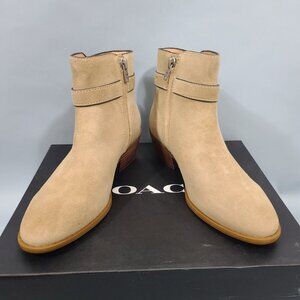 Coach Dylan Oat Suede Block Heel Ankle Boots Womens Size 5.5B NIB MSRP $195
