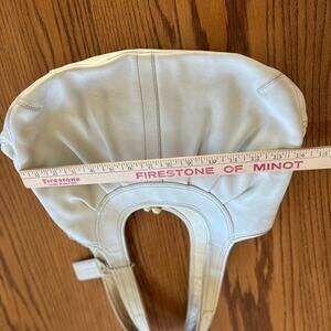 Coach-* RARE Ergo cream, leather hobo handbag/tote/shoulder bag, with pleats. Dimensions are 14” x 8” x 4” approximately. This bag has three compartments, the middle compartment features a kiss lock closure with gold hardware. One of the interior sides features two slip pockets.. the other side features a large zip pocket. The two side pockets meet the center compartment with snaps. Bag has purple Lining. Matching hand tag that says Coach. Purse is very clean inside., * except for one quarter size area on the bottom, guessing it’s nail polish or makeup.