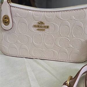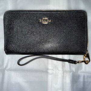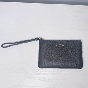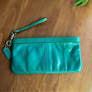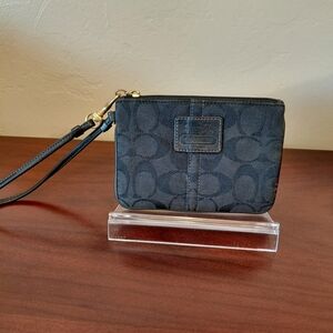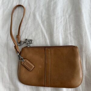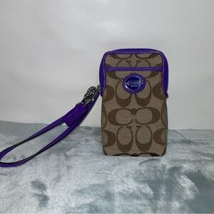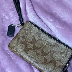 Coach EUC Dark Red and Tan Monogram Corner Zip Wristlet