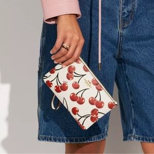 Coach Dark Red and Tan Monogram C Print Corner Zip Wristlet