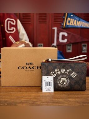 Coach EUC Rainbow Radial Print Khaki and Tan Pride Small Corner Zip Wristlet