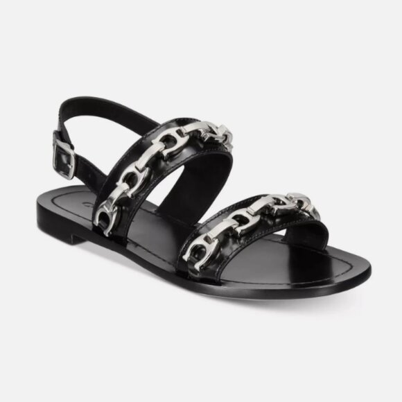 Coach “Eden” Metallic Logo Link Leather Sandals Size 6