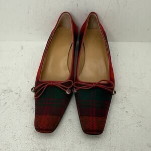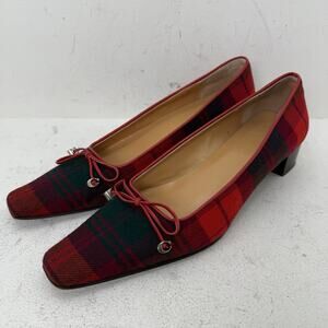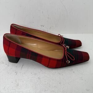 Coach Eden Pumps Block Heel Red Tartan Plaid Square Toe Women's Size 9 EUC