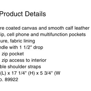 This backpack has been used but is in very good shape. There are a few minor spots on the straps. See photos. But canvas and leather on the body are in excellent shape. Lots of zipper and storage pockets. See pics for measurements and details from Coach. Cushioned straps for comfort. See pics for small hole/stain on the very bottom of inside fabric lining. Hole doesn’t go all the way through lining. Just first layer. Otherwise lining is in excellent shape.