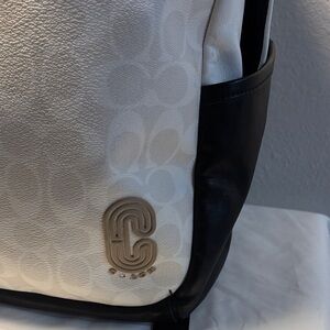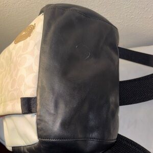 Signature Coated Canvas and Smooth Leather Features: Interior Pockets, Outer Zip Pocket, 2 Outer Side Pockets, Adjustable Shoulder Straps, Top Handle Measures: 11.75" W x 17.25" H x 5.75" D MSRP: $598