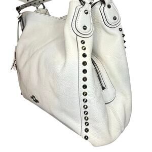 Coach Edie 31 Shoulder Bag – Chalk Pebbled Leather with Silver and Gold Rivets and Coach Dustbag