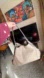 Authentic coach Edie shoulder bag (31), tea rose tooling. This bag is lovely, only worn a couple of times, in excellent condition. There’s a small barely noticeable mark from storage on the backside as shown. Color is stone. Style 12034. Pebbled and smooth leather combination. Tea rose side accents, silver hardware. Turnlock zip top middle compartment with tea rose lock. Interior silk cotton lining, center compartment, two side compartment, magnetic closure, slip pocket and zip pocket. Does not come with dust bag.