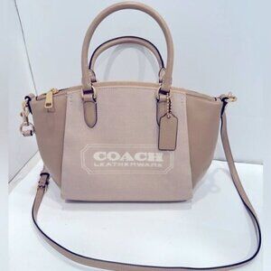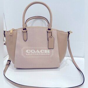 Coach Elise Badge Jacquard Chalk Taupe Satchel Shoulder Bag, purse,