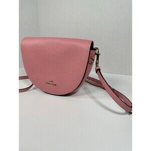 Coach Ellen Soft Pink Pebble Crossbody Saddle Leather Bag Flap Purse Pre Owned