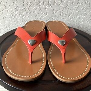Coach: Ellis (FG 2097) Leather Slip On Thong Flip Flop- Silver Tone Heart- 9