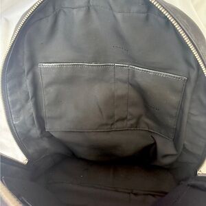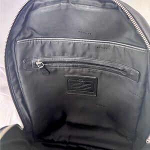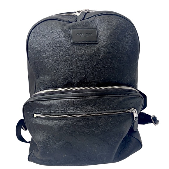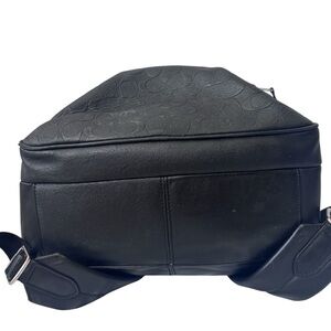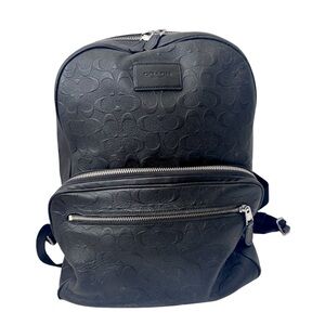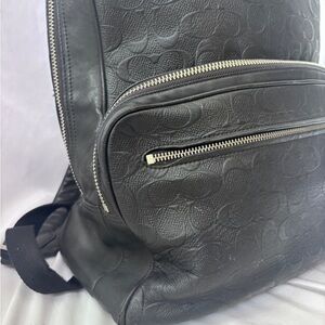 Sleek black backpack with signature Coach embossing. Stylish and practical for everyday use.