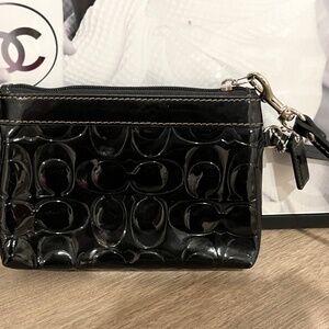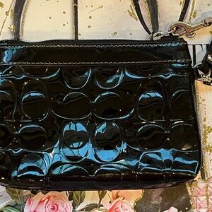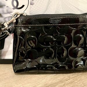 Coach Embossed C Patent Wallet Wristlet Black NWT