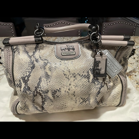 New Embossed Python bag. Absolutely gorgeous!! Sizable bag; see photos for measurements.