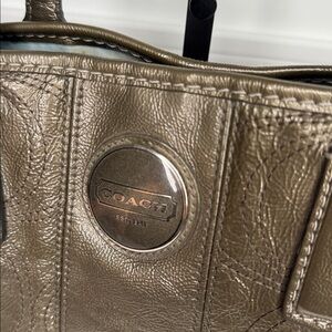 Coach Embossed Signature Gallery Tote F15658 pewter bronze top handle bag purse