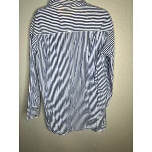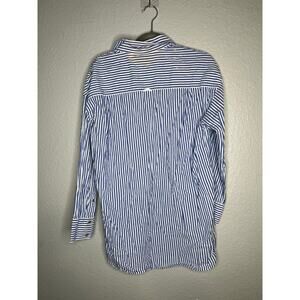 Blue and white cotton (100% Cotton). Top. Long sleeves. Shirt collar neckline. Fully lined. Front button closure. 32" from shoulder to hemline. Imported.