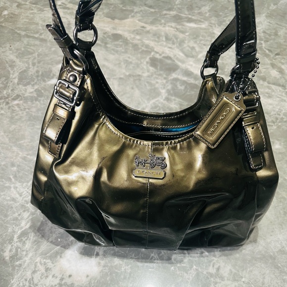 Coach Emerald Patent Leather Vintage Silk Lining Organizer Shoulder Handbag