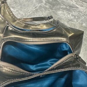 The interior is lined with blue fabric, and there is an organizer to keep your belongings neat and organized. The bag has a solid pattern, and the lining material is fabric. The handle/strap material is also patent leather, and the bag is not handmade. This Coach bag is a must-have for any fashion-forward woman who wants to add a touch of elegance to her wardrobe.