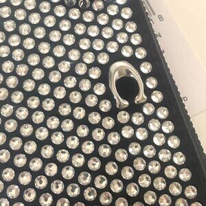 Coach Essential Mini ID Card Case Wallet Keychain Crystal Black Leather CX249