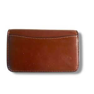 Coach essential slim card case in brown leather and brass. Adding a coordinating vintage coach keychain, it is older than the card case bit goes nicely with it.