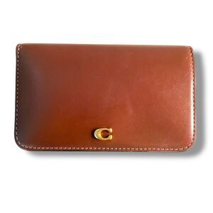 Coach Essential Slim Card Case Brass Brown W/Vintage Keychain