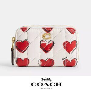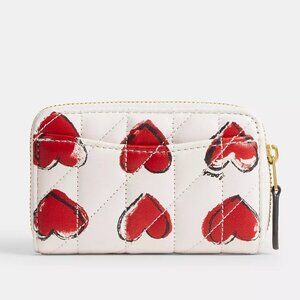 ❤️ Coach Essential Small Zip Around Card Case With Quilting And Heart Print
