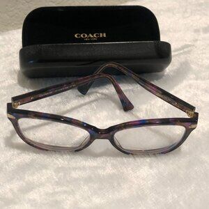 Coach HC 8132 52888H Eye Glasses - Luxury designer prescription glasses made to accommodate most prescription glasses. Female Design - Very modern and elegant look. Rectangular Eye Shape - Full frame design rim all the way around the lenses. Made of acetate - Spring type hinge. Size: 57-17-135- Color: Purple Confetti Tortoise - Includes Glasses and Case - As is Preowned Condition/Great Condition - Note: Eye Glasses Comes With Prescription Lenses. Will need to replace lenses with your own prescription.