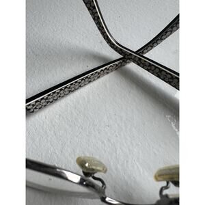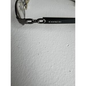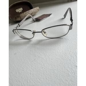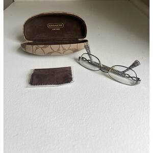 The interior of the glasses frame contain the signature coach logo pattern with a classic black solid pattern on the exterior, with silver plated hardware. Feel free to message me with any questions!