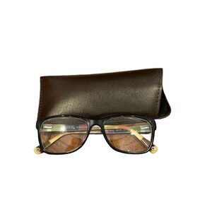 Eyeglass with lenses intact. Maybe removed to add your own lenses. Comes with leather eye glass case.