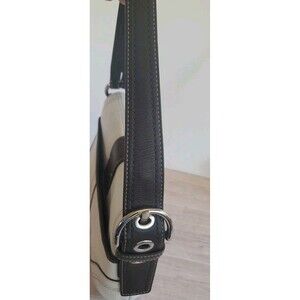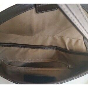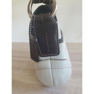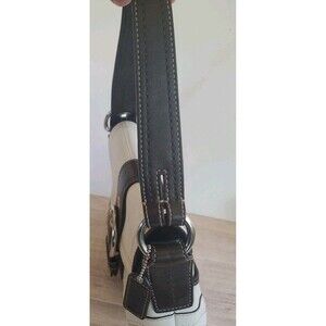 Coach handbag and matching wallet. Pre-owned excellent. This bag never used, stored in dust bag in climate controlled environment. I purchased bag with flaw, small dent in leather front of bag and discoloration on wallet upper left corner. Both are shown in photos. There is a bit of brown leather transfer to white on back pouch on inside of handbag, cannot see it from outside. Leather has been conditioned and cared for on both items over their 19 years in my collection. See my feedback for past handbag sales on ebay. Thank you!