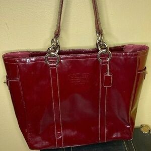 This is a wonderful Coach F12838 Burgundy Red Wine Patent Leather Tote Shopper Shoulder Bag