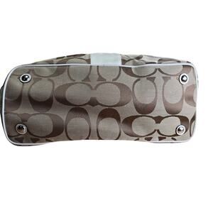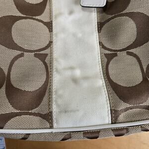 Coach F13533 Signature Leather Stripe Tote Carryall Logo Canvas Purse Handbag Like new condition, one tiny pen mark, see pic, otherwise excellent/nearly new