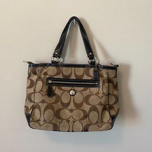 Coach F14941 Tan Black Laura Signature Monogram Canvas Shoulder Purse Authentic