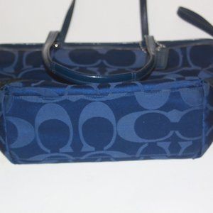 Coach F17574 Signature Tote Handbag Satin Purple Sequins Medium Blue