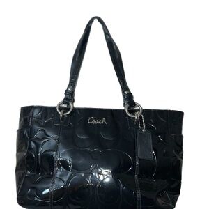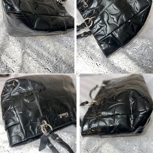 Discover the elegance of the Coach Black Leather Floral Embossed Tote, a perfect blend of style and functionality. This tote features a glossy, embossed floral pattern on a structured yet flexible design, making it ideal for everyday use. With its sleek black leather and silver-toned hardware, this bag is a sophisticated addition to any wardrobe.