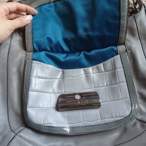 Coach F18287 Kristin Spectator Tote Shoulder Bag Gray Croc Python Trim Embossed
