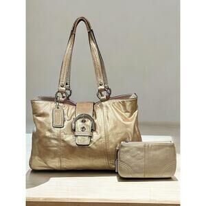 Coach F18751 Metallic Gold Soho Buckle Leather Carryall Bag & Soho Wristlet