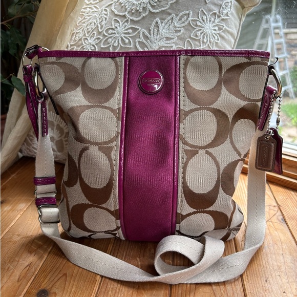 Coach F21905 Signature Pink Stripe Crossbody Bag