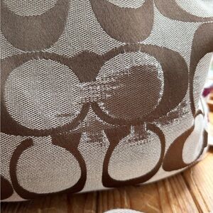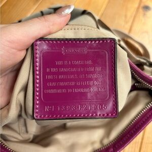 Coach F21905 signature pink stripe duffle crossbody bag. Interior is in great condition! Some wear to the back fabric as pictured and the zipper pulls.