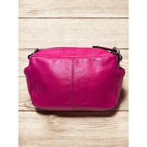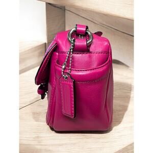 This Coach F25150 Campbell Leather Camera Bag from 2013 is such a great color for summer! Featuring smooth leather in magenta, this smaller bag has an adjustable strap for shoulder or crossbody wear and three external pockets. If you love Coach design and quality, you need this camera bag in your collection!