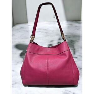 This Coach F28997 Lexy Pebble Leather Shoulder Bag from 2018 in the color Peony is a classic Coach silhouette and style! Featuring refined pebble leather, gold ring detail and three sections, this bag is both super stylish and functional with more than enough room for all of your items. If you are looking for a great everyday shoulder bag in a bright, fun color, then this is perfect for you. If you love classic Coach design, this is a must have for your collection!