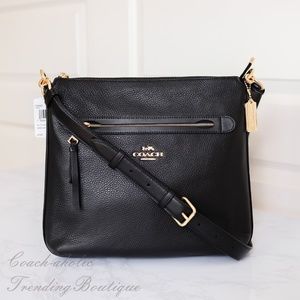 NWT Coach F34823 Mae Pebble Leather Crossbody Bag in Black MSRP $325