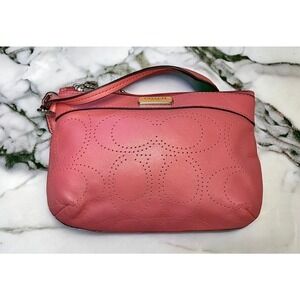This Coach F47330 Perforated Medium Leather Wristlet in Salmon is the perfect little accessory for spring and summer! Featuring a perforated C design and silver hardware, this bag is ready for a beautiful spring day, brunch with your friends or a night out on the town. A must have for the Coach enthusiast or collector.