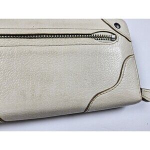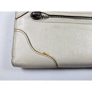 Pre-owned condition. There is general wear and some discoloration on the exterior. There is discoloration in the coin pocket. There is some discoloration around the zipper. Measures approximately 7.75x4. Please see photos for detailed condition.