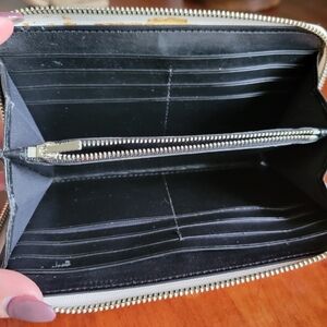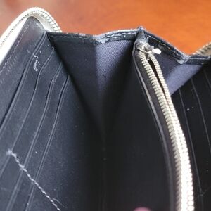 Very Good Used Condition. Callouts: Some darkened glue on the inside of the zipper tape, pictured. Has the tiniest bit of edgekote missing on the zipper pull, pictured. Minor peeling on one side, pictured, from being stored empty where the zipper pull rubbed inside. Clean inside & out. No odors and all zippers and hardware function well. Authenticity verified in CC.