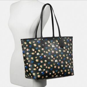 Coach F57668 Reversible City Tote in Tea Rose Floral and Black Multi Color