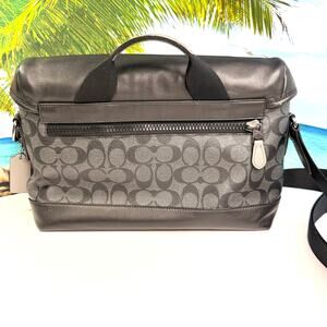Coach F58896 Mens Metropolitan Slim Brief Messenger Bag Leather Signature Canvas