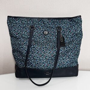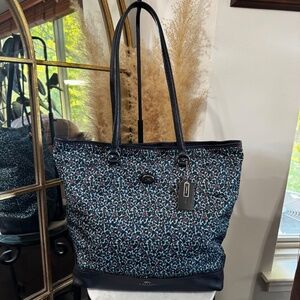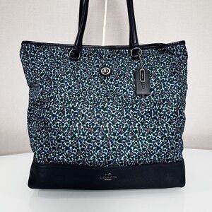 Coach F59435 Navy Floral Print Leather/Nylon Large Tote Shoulder Bag