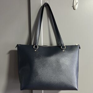 Coach F79808 Large Crossgrain Leather Gallery Tote Bag Navy Blue Front Pocket