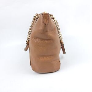 Coach F87775 Pebble Leather Ava Chain Tote Bag Shoulder Purse Tan Brown Chain