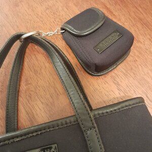 Coach small tote for evening wear or out to dinner. Bag measures 6"h x 9"w x 3 1/2"d. The bag. has only been used a couple of times and is in great used condition. There is one inside zippered pocket, a key pouch with a snap closing and a 4' x 5" zippered card case.
